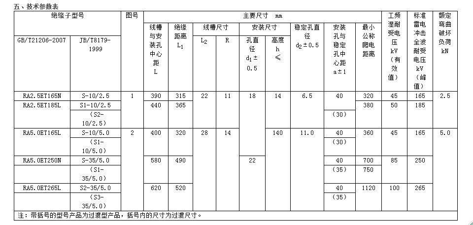 再后的字母T、C、H分别表示顶部绑扎型、直立安装的顶部线夹型或水平安装的顶部线夹型;