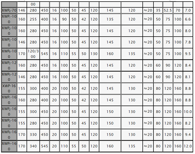 XP—以机电破坏负荷表示的普通型悬式瓷绝缘子;X—以一小时机电负荷表示的普通型悬式瓷绝缘子,其右下角数字为设计顺序号,数字70、80、100、120、160、210、300为额定机电破坏负荷(KN);3、4.5为一小时机电实验的机械负荷(t),C—槽型链接(球形链接不表示)。