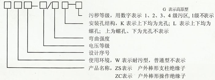 四、35kv户外支柱绝缘子ZSW-35/8支柱绝缘子产品型号说明