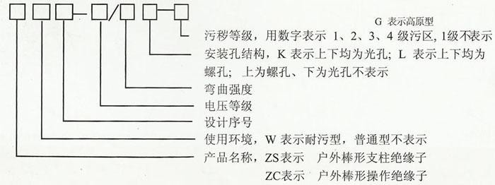 表示户外棒形支柱绝缘子、耐污性、设计序号为2、220kv电压等级、16kN弯曲强度、上下法兰均为光孔、用于3级污区。