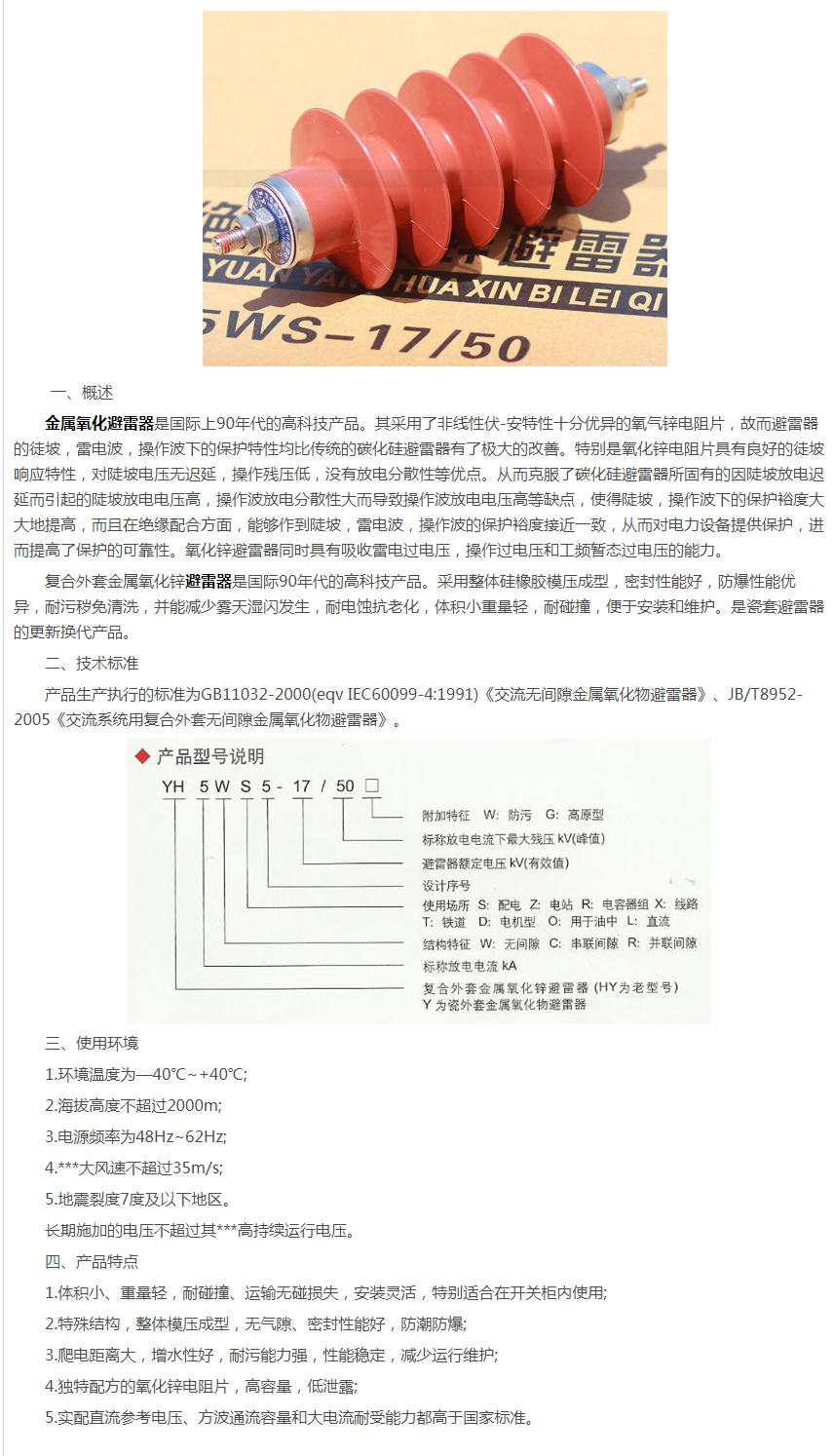避雷器HY5WS-17_50
