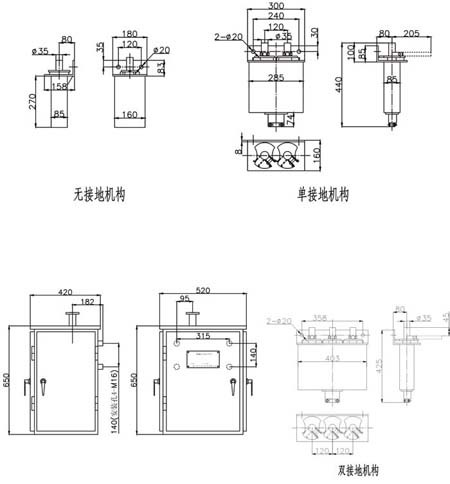 1) 35kV 成套隔离开关由 GW4-40.5 (D)(W)型隔离开关本体、CS11或CS8-6D型人力操动机构、传动附件等组成,也可配用CJ6型等电动机构。110kV成套隔离开关由GW4-126 (D)(W)型隔离开关本体、CS14G 人力操动机构、传动附件等组成,也可配用CJ6型等电动机构。 |