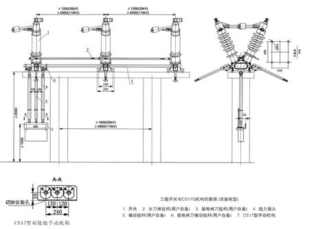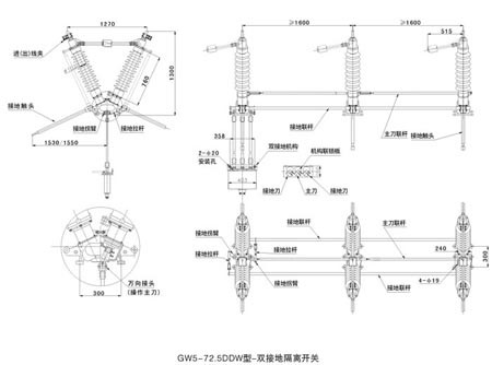 1) 本产品为双柱水平断口中间开启式,可以一侧或两侧附装接地开关。90°传动的隔离开关采用CS17型人力操作机构进行三极联动操作;180°传动的隔离开关采用CJ6型电动机操动机构或CS17G型人力操作机构进行三极联动操作;接地开关采用CS17G型人力操动机构三极联动操作。