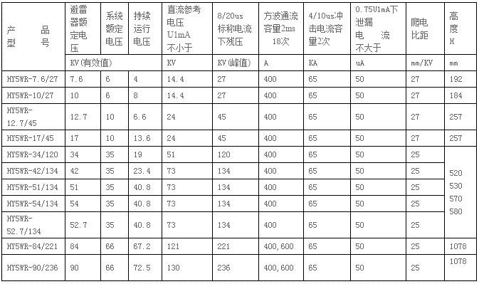 产品生产执行的标准为GB11032-2000(eqv IEC60099-4:1991)《交流无间隙金属氧化物避雷器》、JB/T8952-2005《交流系统用复合外套无间隙金属氧化物避雷器》。